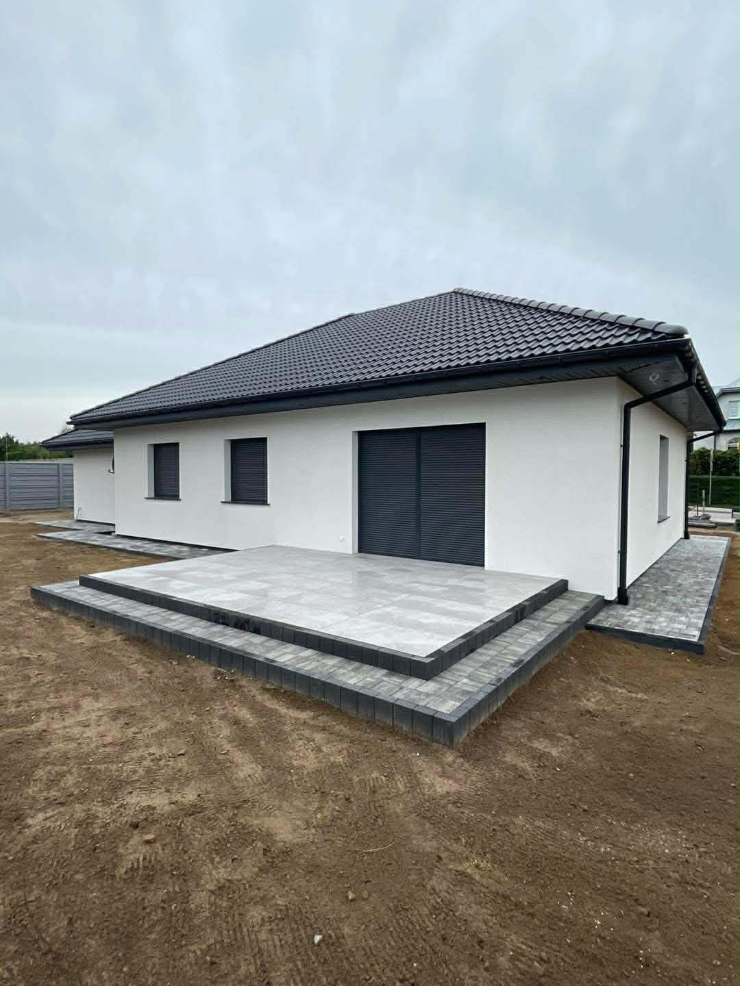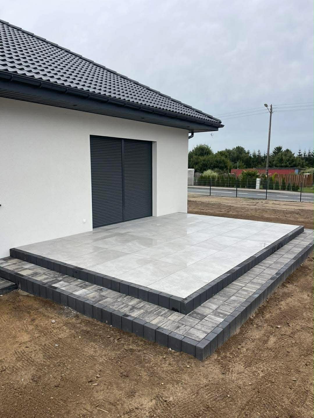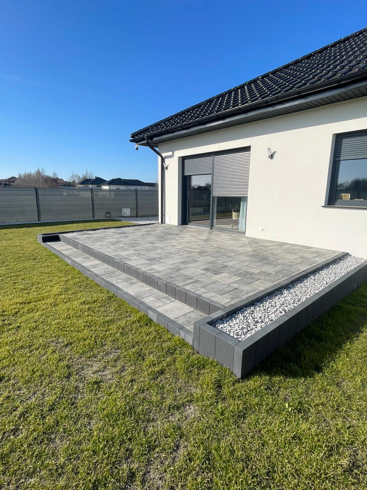 Wir haben die umfassende Gestaltung des Außenbereichs rund um ein modernes Gebäude in Stettin realisiert. Das Projekt umfasste die Gestaltung der Terrasse, der Verkehrswege sowie des Eingangsbereichs, wodurch ein einheitlicher und funktionaler Raum rund um das Haus geschaffen wurde.