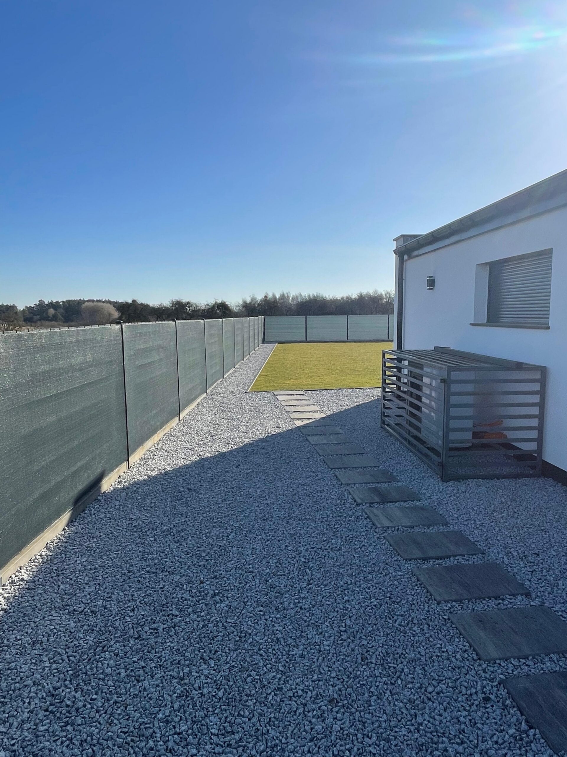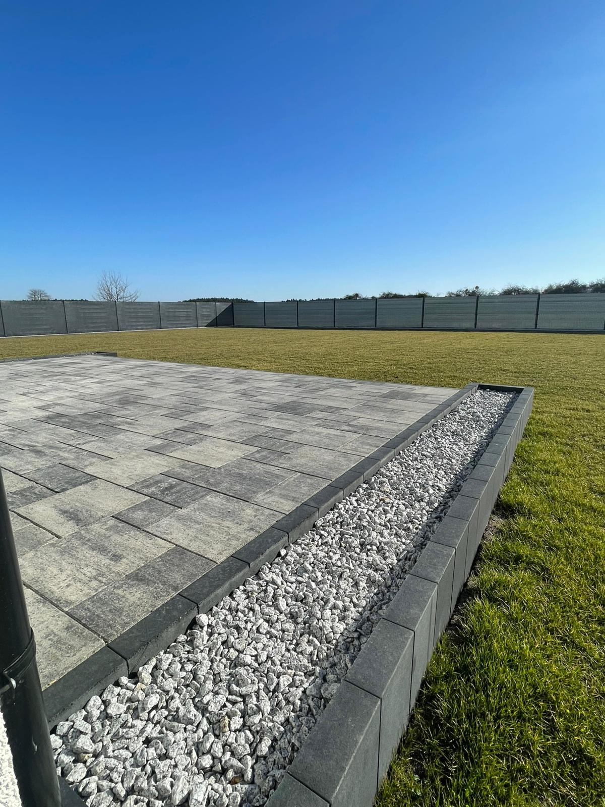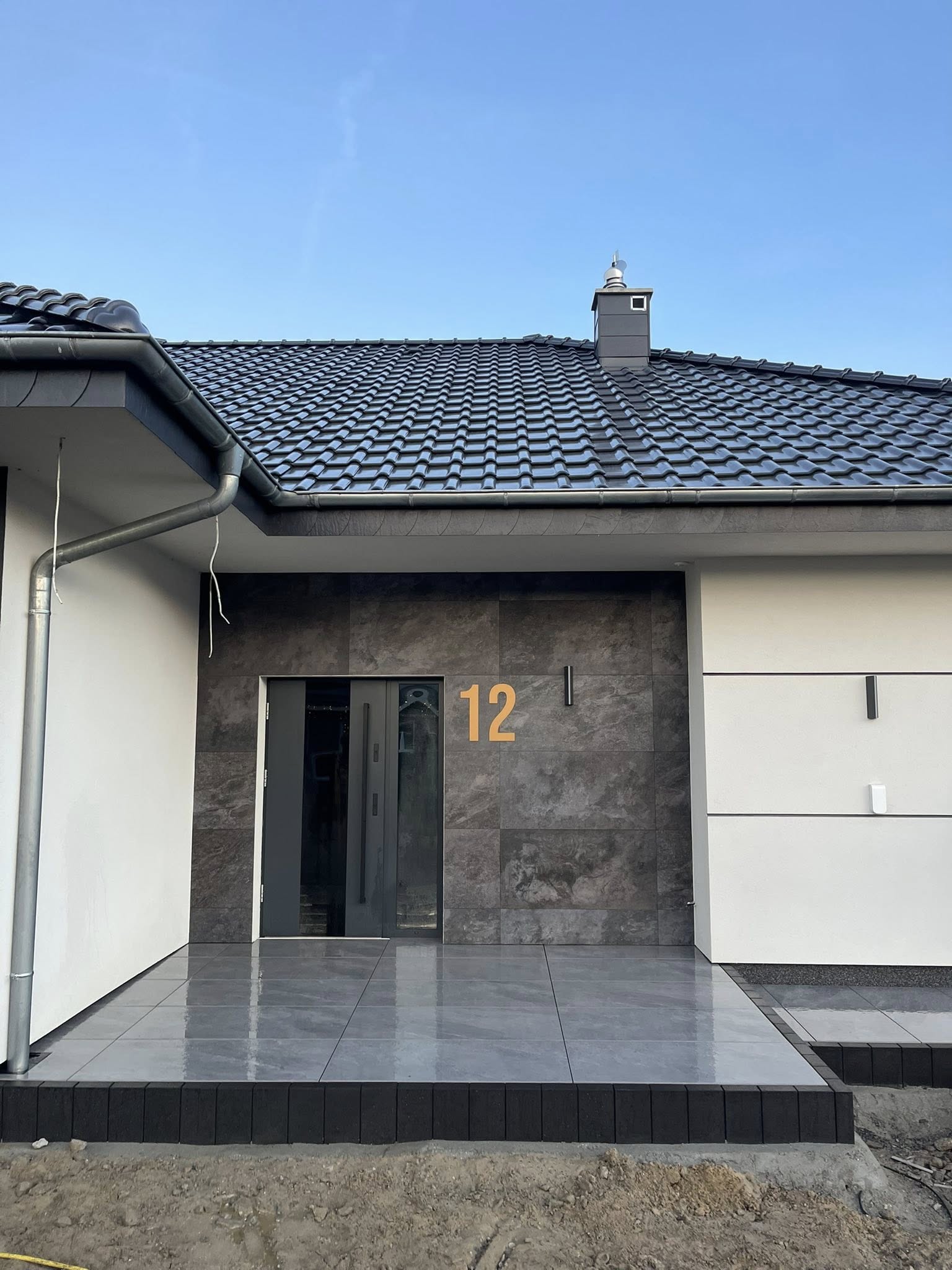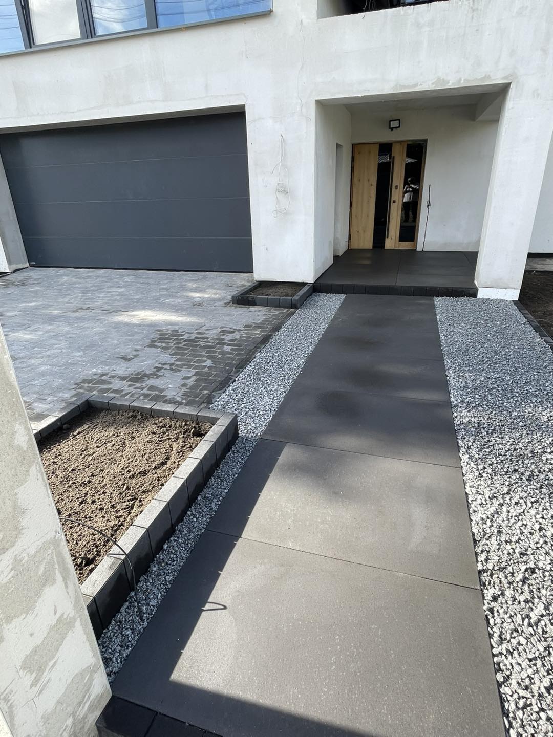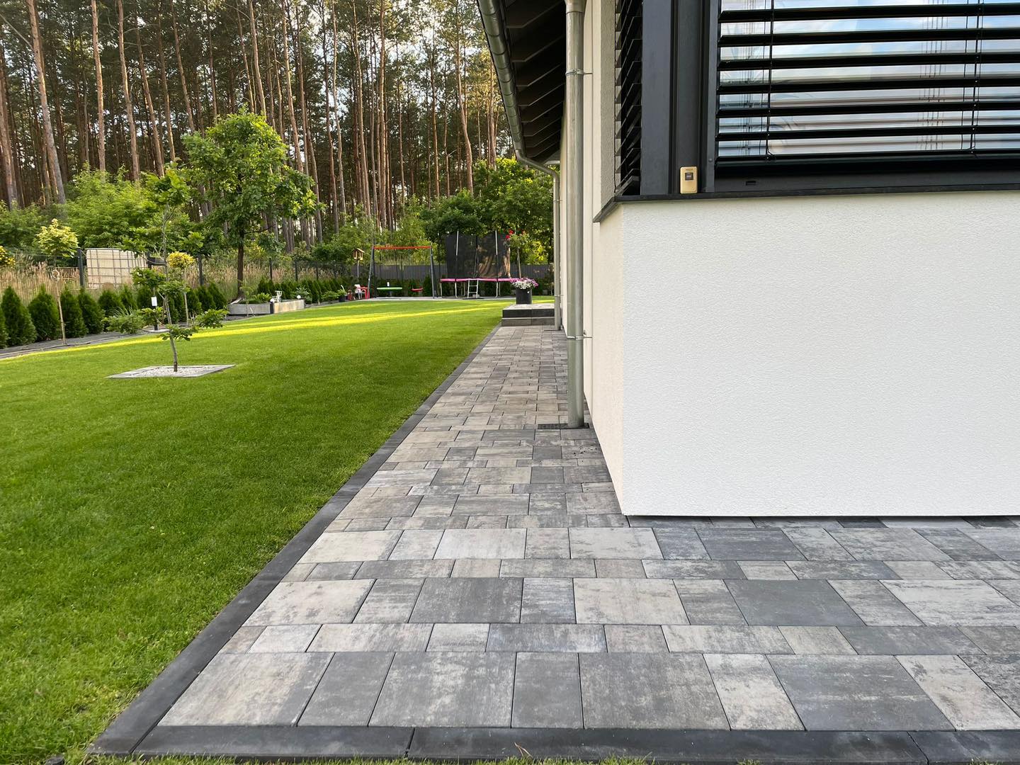 Wir haben den gesamten Außenbereich rund um das Haus gestaltet: Terrasse, Eingangsbereich, Gehwege und Auffahrt, wodurch ein harmonisches und funktionales Gesamtbild entstanden ist.