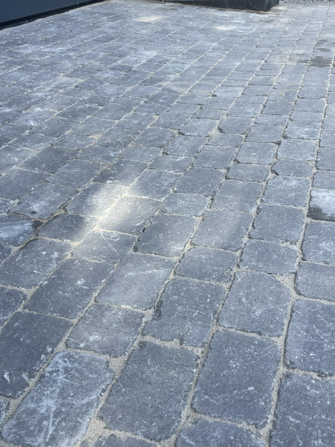 Der Kunde vertraute uns nicht nur bei der Ausführung, sondern auch bei der Materialauswahl. Gemeinsam entschieden wir uns für die Pflastersteine Cubos in der Farbe „Onyx“, die dem Ganzen einen eleganten und modernen Charakter verleihen.