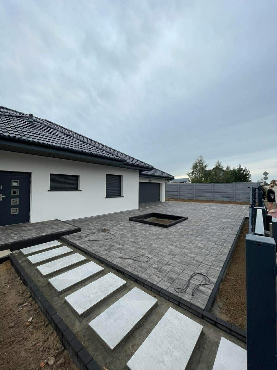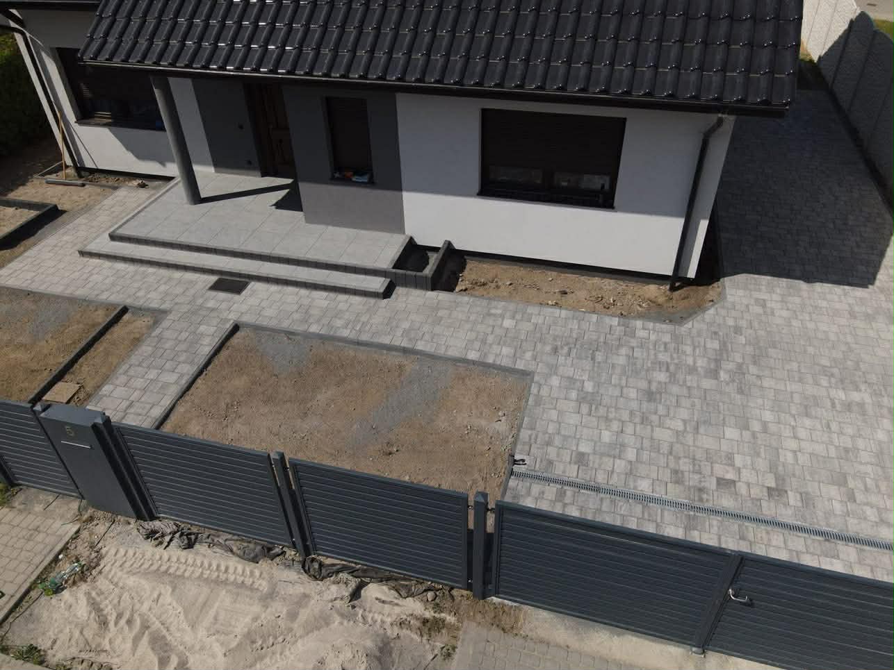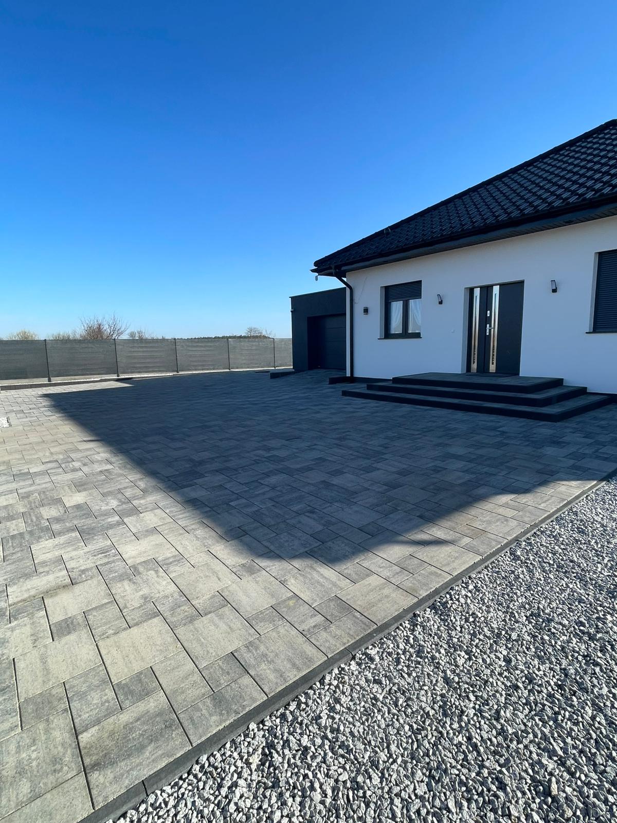 Bei diesem Projekt haben wir das Gelände rund um das Haus von Grund auf neu gestaltet. Der Arbeitsumfang umfasste die Entfernung des alten Belags, die Vorbereitung des Untergrunds sowie die Gestaltung eines neuen, ästhetischen Bereichs aus Pflastersteinen.